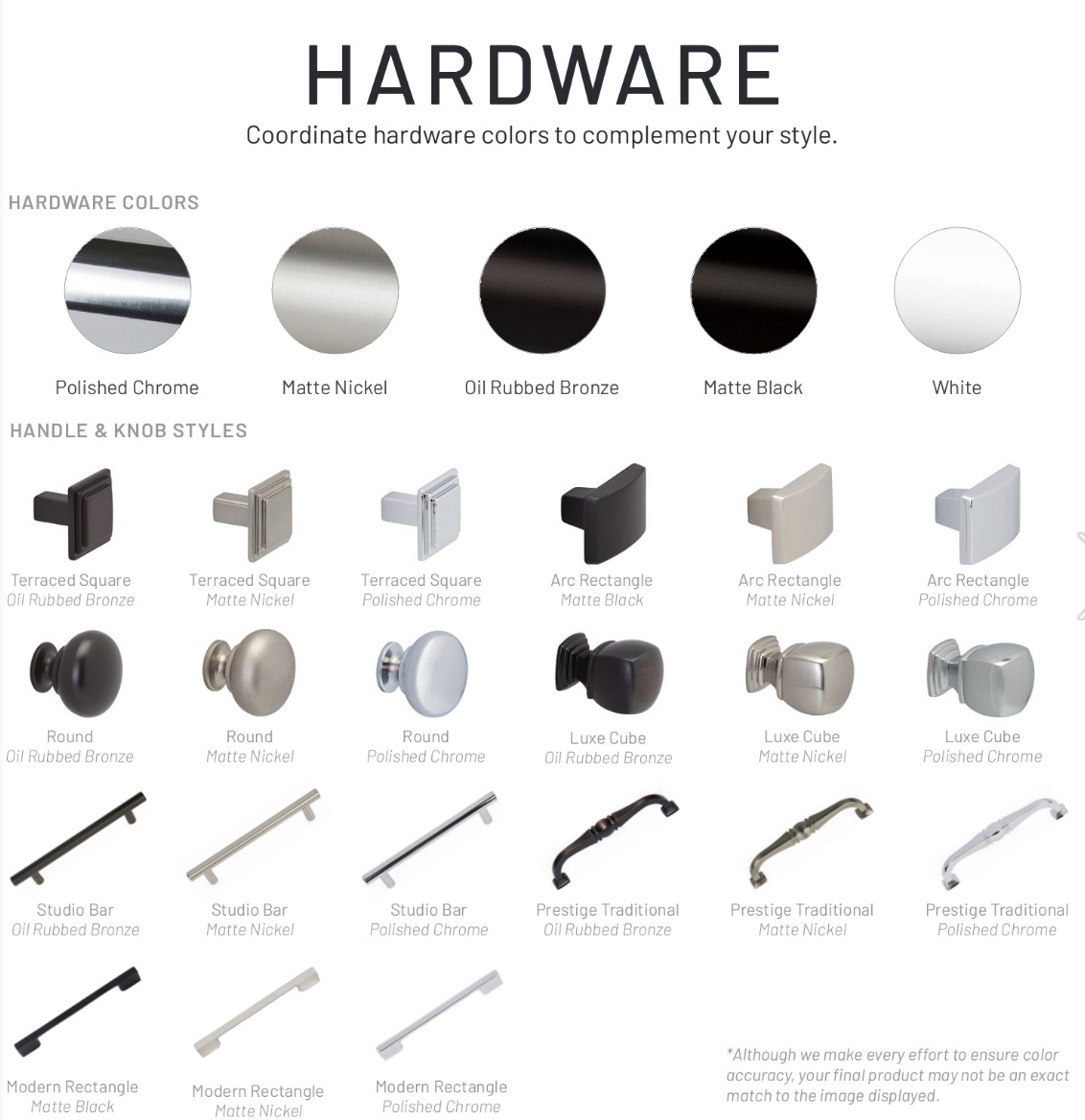 COLORS & FINISHES: